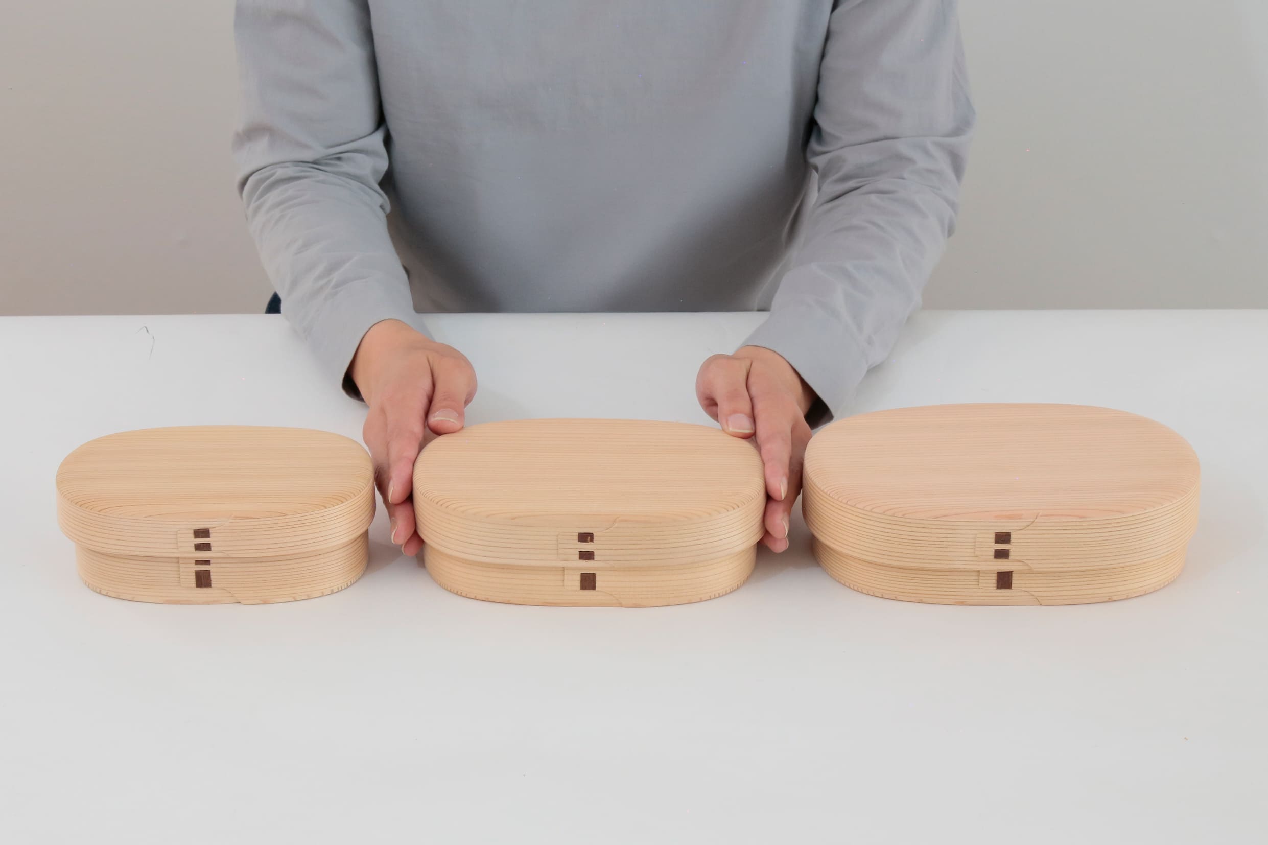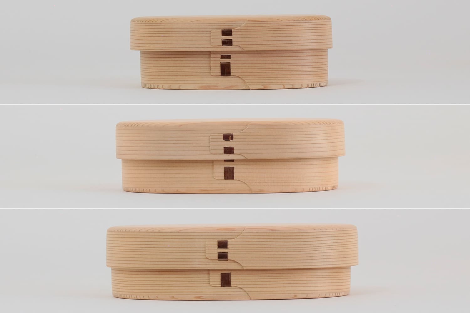 一つ一つ手作業でつくられている、伝統的工芸品の大館曲げわっぱのお弁当箱。