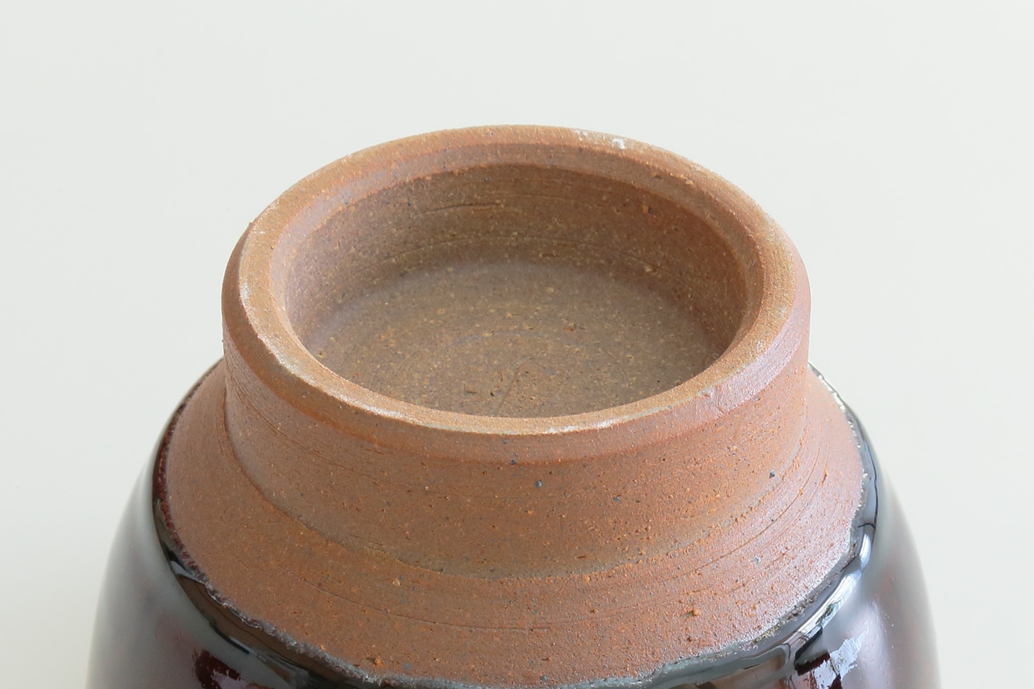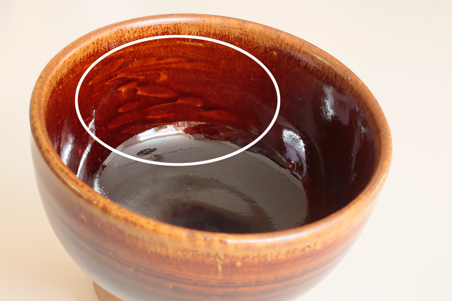 掲載写真に写っているものより、底面の素地の部分の赤みが強くなっており、「飴釉」の釉薬の色が濃くなりツヤが見られます。