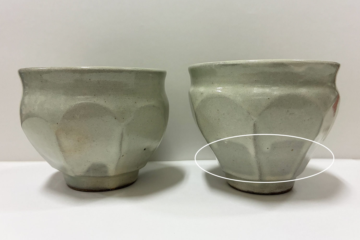 土灰釉(どばいゆう)をかけた「粉引(こひき)」、