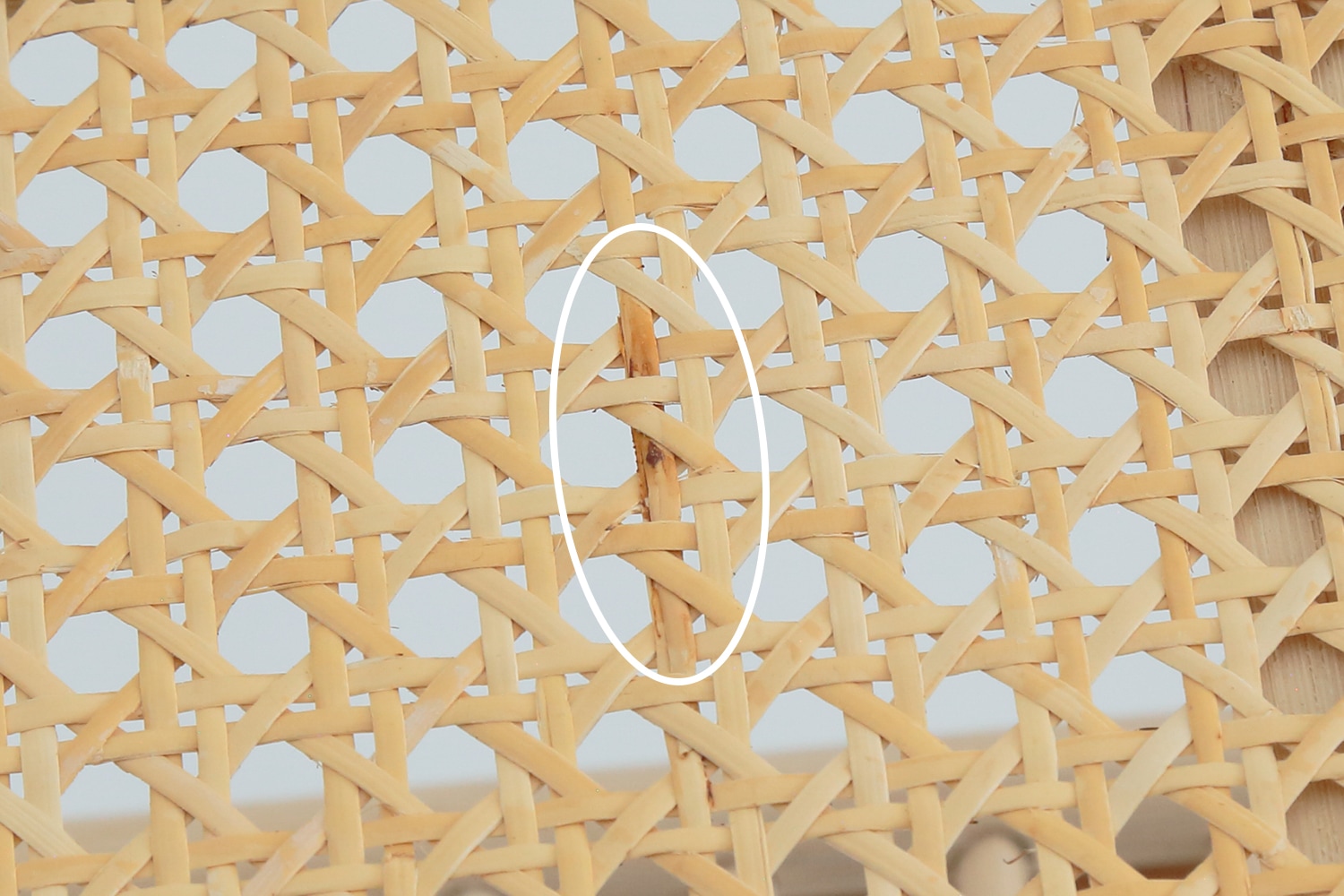 かご部分の底面は、均一で細く仕上げた籐のひごを使い、細やかで美しい網目模様に編まれています。