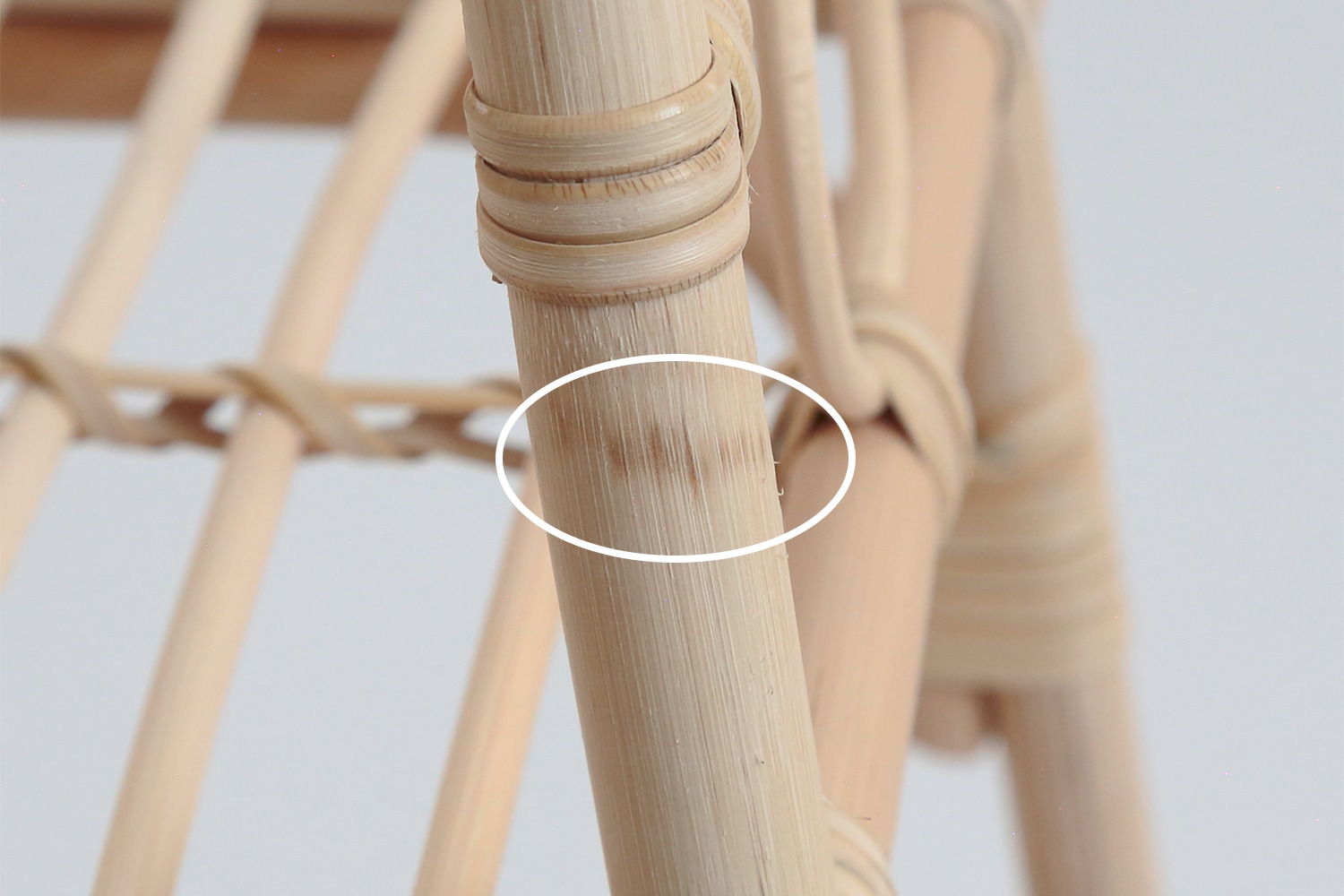 - 籐の側面に点のような傷が見られますが、固定のために留め具を打ち込んだ跡です。傷ではなく製品仕様となります。