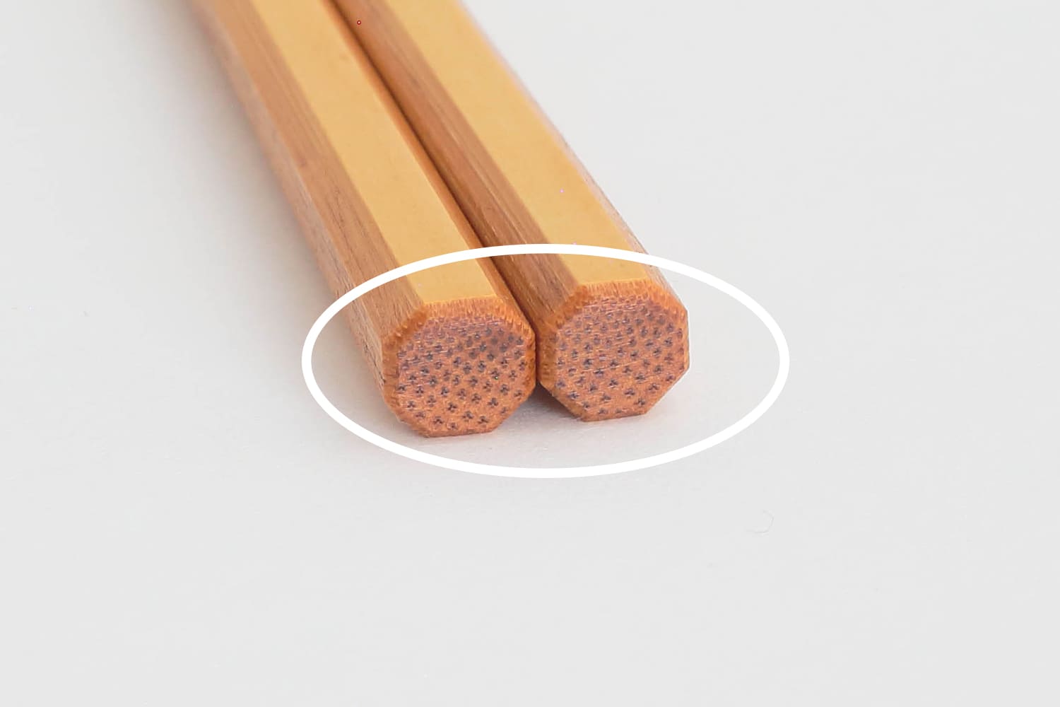 まっすぐな竹だからこそかなう繊細な細さの箸は、細かいものもつかみやすいかたち。