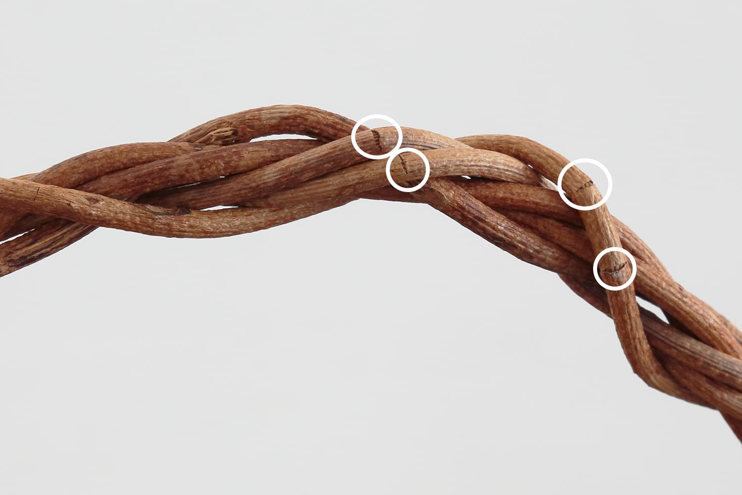 - ささくれ、とげ、色ムラ、黒点や斑点などがあります。また、素材の表面がはがれたところなどがあります。これらは、自然素材ゆえの特性です。不良品ではありませんのでご理解ください。