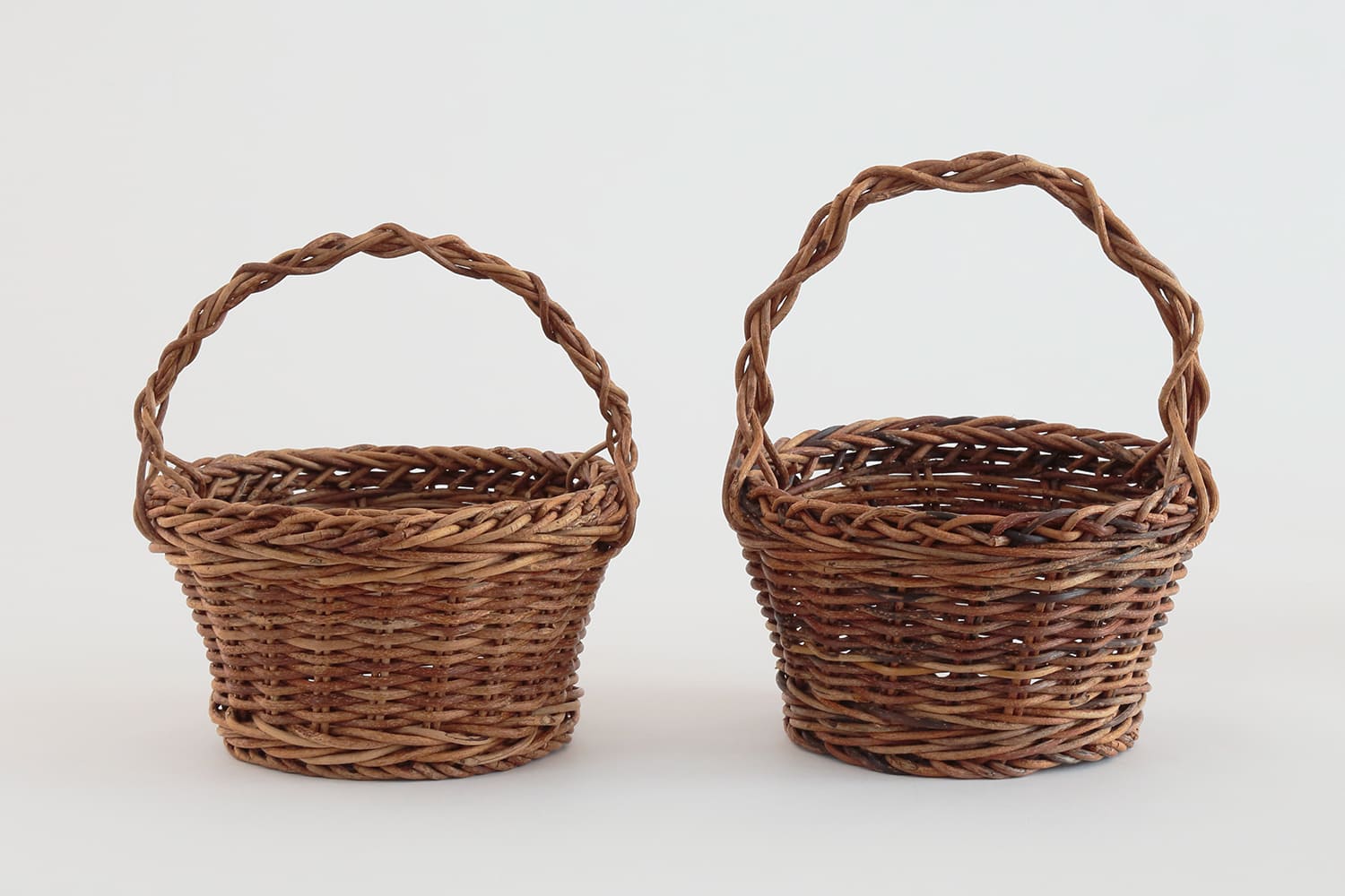 持ち手のついた小さなかごは、絵本の世界から飛び出てきたよう。