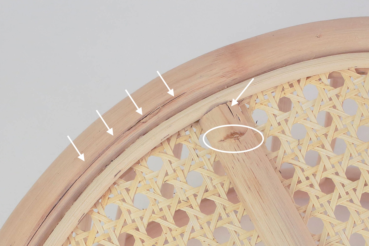 緻密に編み上げた底面には、中央に太い籐を1本渡してより丈夫に。