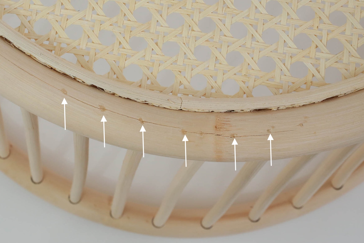 このような太い籐で美しいカーブを活かせるのも、柔軟性のある籐ならでは。